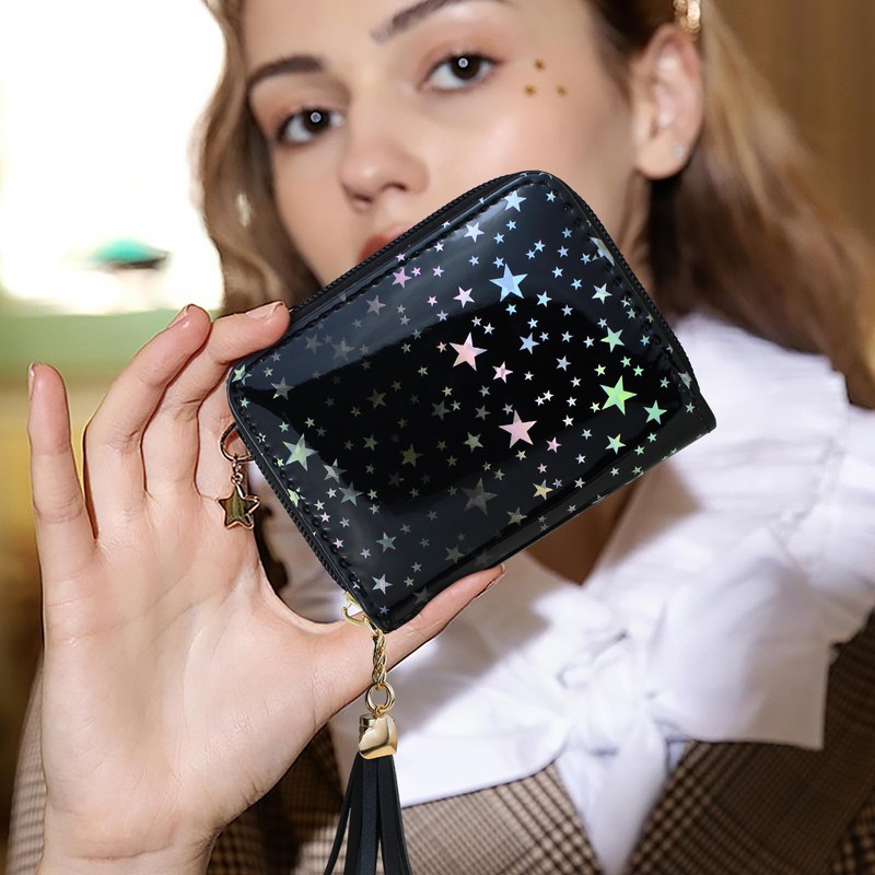- Fashion and Exquisite Design: The exterior of this small coin purse is designed with trendy star patterns. Star tassel pendant matched with the zipper can not only add a stylish element to the wallet but also help you zip it off more conveniently