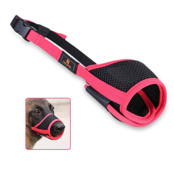 Andiker Mesh Mouth Cover with Adjustable Loop and Soft Pad - Dog Muzzle for Training, Barking Prevention, Biting and Chewing Guard (Red-Black, M)