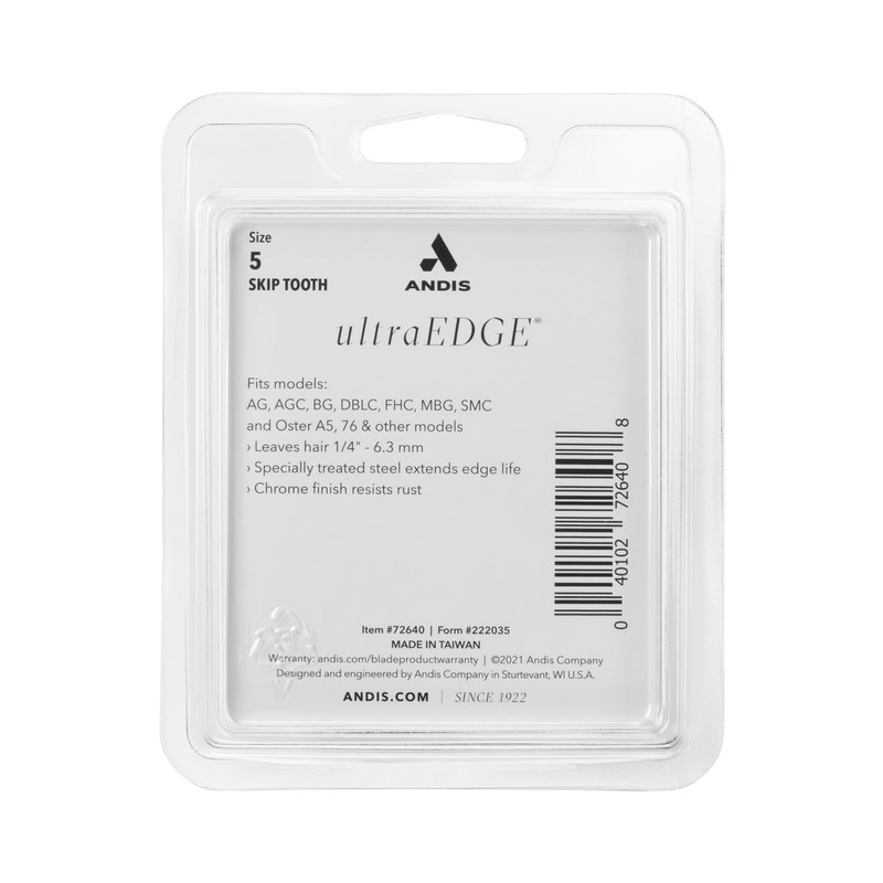 Andis Andis Carbon Infused Steel UltraEdge Dog Clipper Blade, Size-5 Skip Tooth, 1/4-Inch Cut Length (72640),Chrome