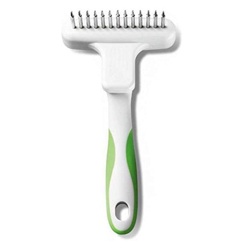 The Andis Flexible Pet Rake Comb has 13 long teeth and is ideal for small to medium dogs. It removes dead hair from undercoat and topcoat and eliminates tangles. Its flexible spring-mounted pins adjust to the contour of your pet's body. Teeth rotate 360 to reduce pulling hair while combing and the anti-slip, easy grip handle makes for safe and comfortable grooming.