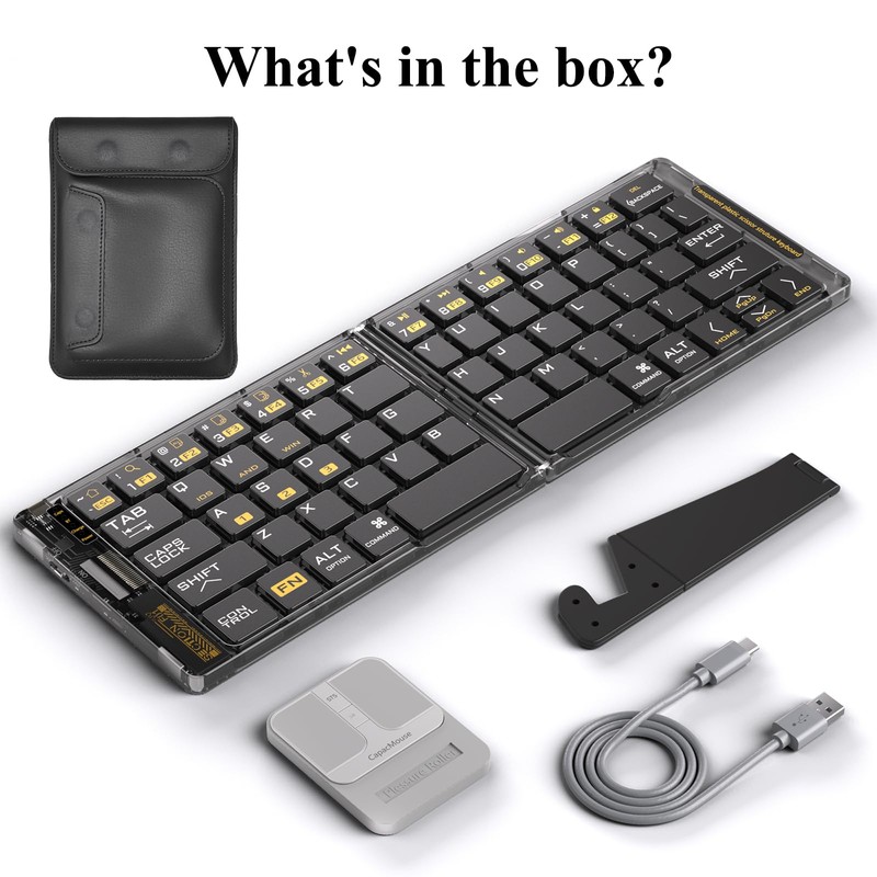 - 【Ideal Present】combo includes a hard carrying case(Size: 12 x 5.55 x 1.6 in) will protect the keyboard and mouse kit while not taking up excessive space in your backpack. Also has a collapsible stand holds all 4-11" iPads, iPhones, and tablets. It becomes an ideal present choice for business partners, colleagues, friends or families,which offer a mobile workspace that travels with them