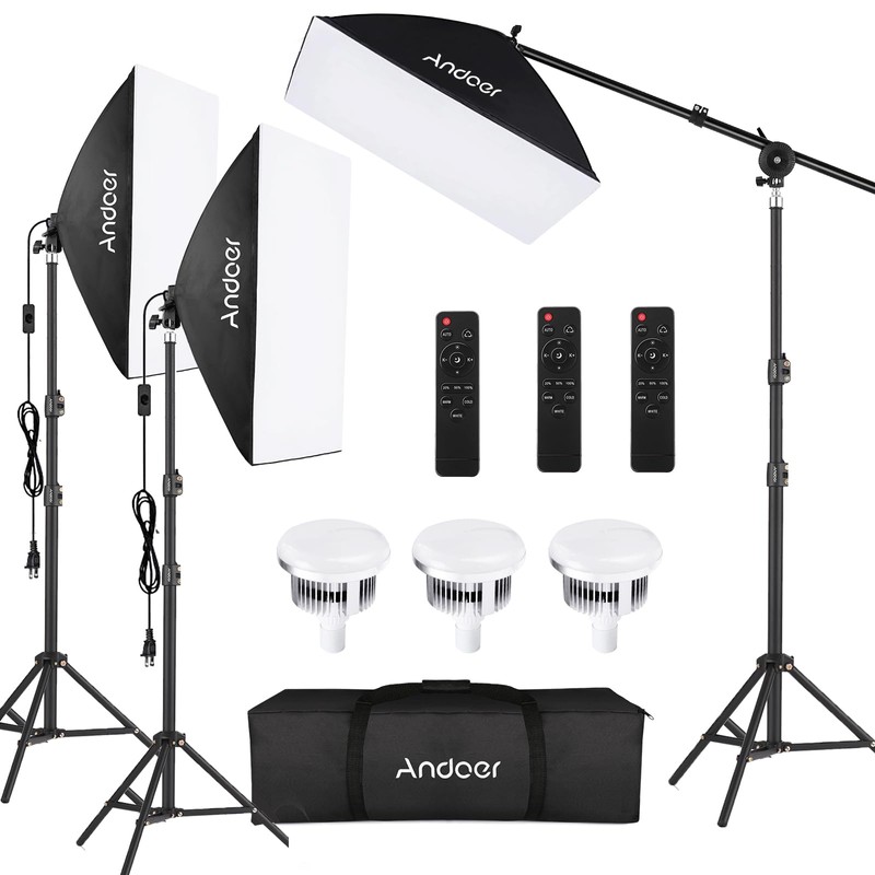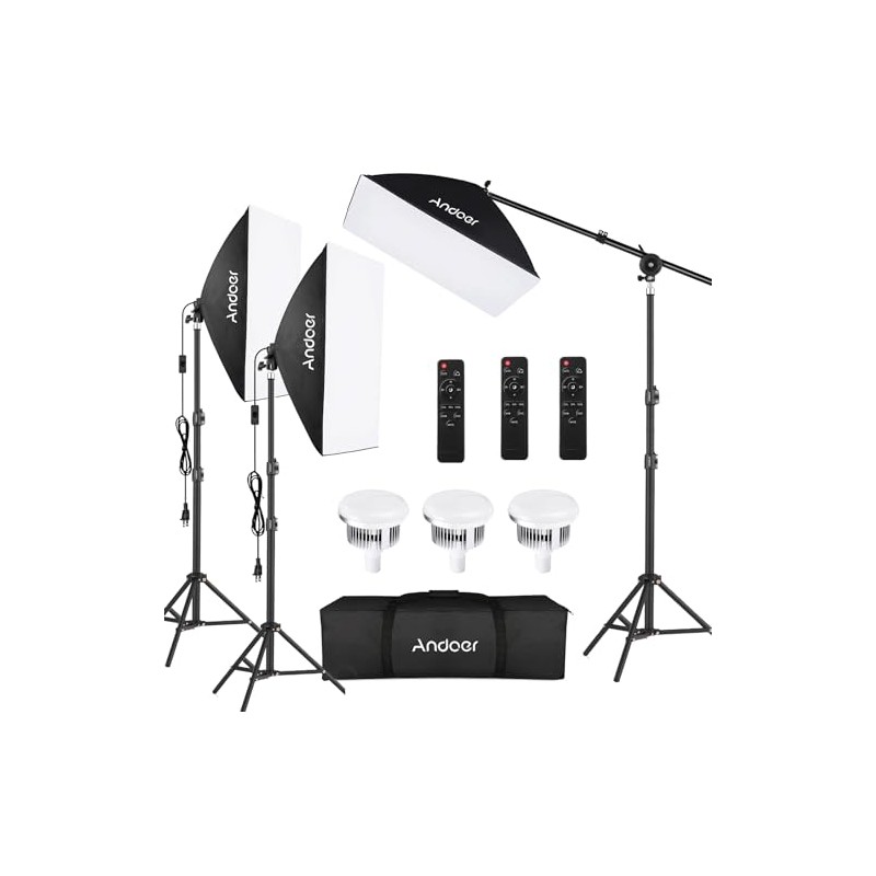 Andoer Softbox Photography Lighting Kit Professional Studio Equipment with 20"x28" Softbox, 2800-5700K 85W Bi-Color Temperature Bulb with Remote, Light Stand, Reinforced Version