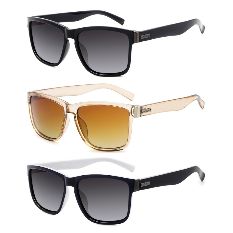 ANDOILT Sport Polarized Square Sunglasses (A6-3pcs-Grey Lens + Champagne + Grey Lens)