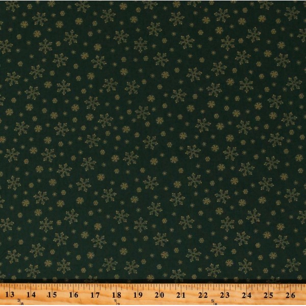 Andover Fabrics Cotton Metallic Gold Snowflakes on Green Christmas Fabric Print by Yard D400.45