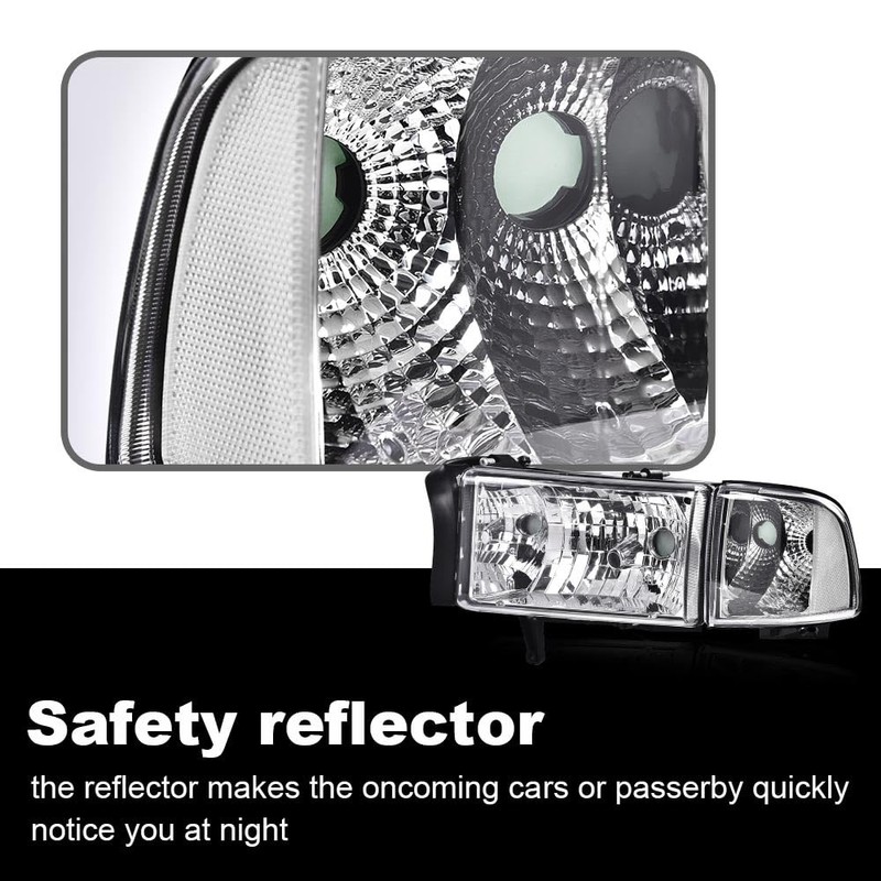 ANDPLAY Headlights Compatible with Dodge Ram 1500 1994 1995 1996 1997 1998 1999 2000 2001/Fit Dodge Ram 2500 3500 1994-2002 Clear lens Chrome Housing Clear Reflector Bumper Headlamp