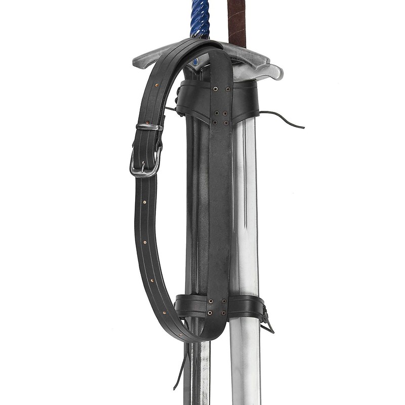 Andracor - Back Sword Sheath for Two Swords - Black Leather with Bronze Chest Buckle