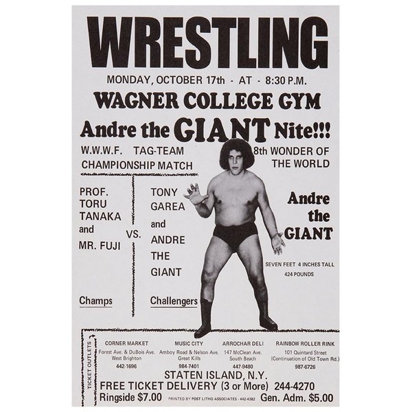 Andre The Giant - 1970s - Vintage Wrestling Poster-24 x 36 Inches