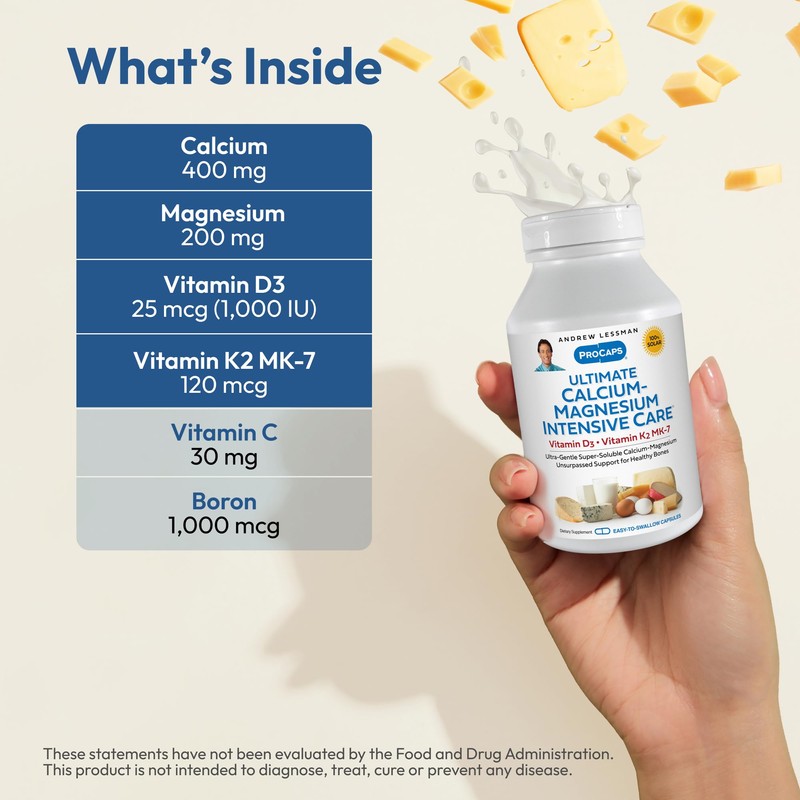 ANDREW LESSMAN Ultimate Calcium-Magnesium Intensive Care with Vitamin D3 & K2 MK7-120 mcg - 360 Capsules – Bone and Skeleton Health Essentials. Gentle, Easy to Swallow, Super Soluble. No Additives