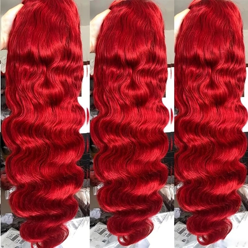 ANDRIA 13x4 HD Transparent Red Lace Front Wigs 200% Density Body Wave Lace Frontal Wig Loose Wave Natural Wine Red Glueless Lace Wigs with Baby Hair Pre Plucked Hairline 28 Inch Wig For Black Woman