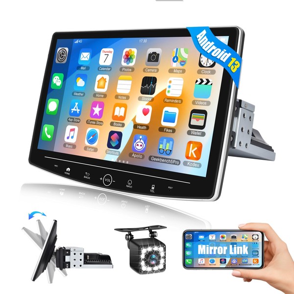 CAMECHO Android 13 Single Din Car Stereo with Navi, 10.1 Inch Floating HD Touch Screen Bluetooth Radio with Backup Camera, WiFi, GPS, Mirror Link, USB Input, Split Screen, FM RDS Audio