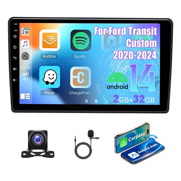 - 👍Wireless / Wired Carplay and Android Auto: The auto radio supports wireless/wired apple carplay and android auto, connect the car stereo to your phone using a Bluetooth or USB cable. connect to mobile phone, access mobile phone address book, mail, notification, map navigation, music, video and other information, and realize voice control. This Android 14 Radio is perfectly suitable for Ford Transit Custom 2020-2024 stereo radio,and no need to purchase additional accessories.