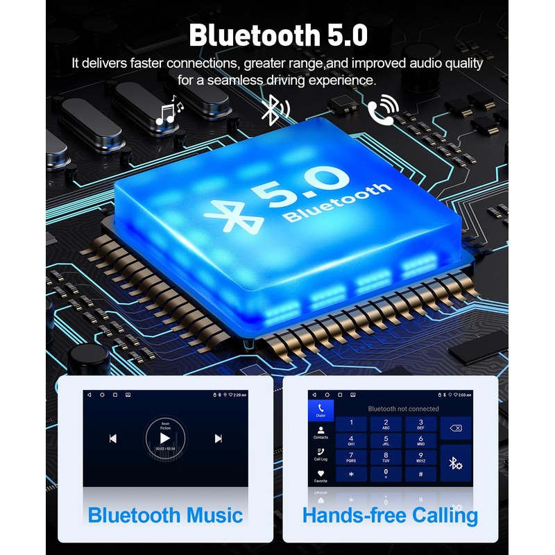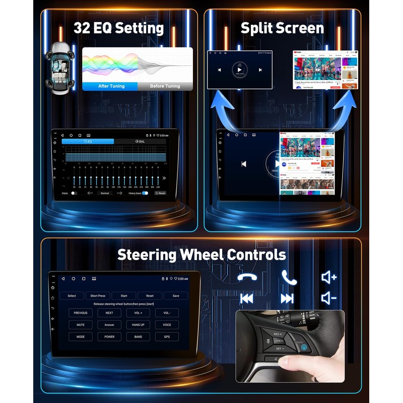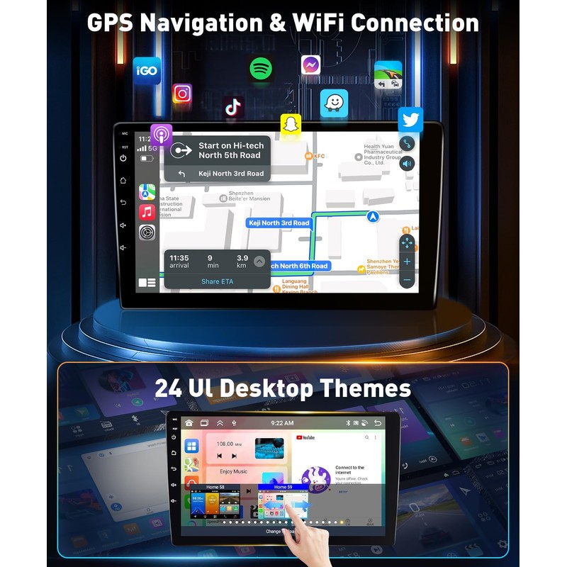 - 【Powerful Functions】Our Android 11.0 car audio receivers with 9 inch IPS Touch Screen built-in 2G RAM + 32G ROM, ensures smooth operation and faster response,support wireless CarPlay, wireless Android Auto, GPS navigation, Bluetooth5.0, FM radio, EQ Settings, WiFi Connection, Backup Camera, USB, music player, 1080p video player, video and audio output, AUX audio and video input, external microphone, steering wheel control.