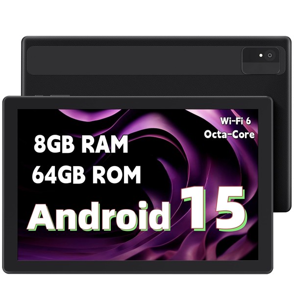 Android Tablet - 10 Inch Tablet for Adults with Octa-Core CPU, 8GB RAM, 64GB ROM, 1TB Expandable Storage, Dual Camera, 2.4G/5G Wi-Fi 6 - Android 15 Tablets with Protective Case, Black