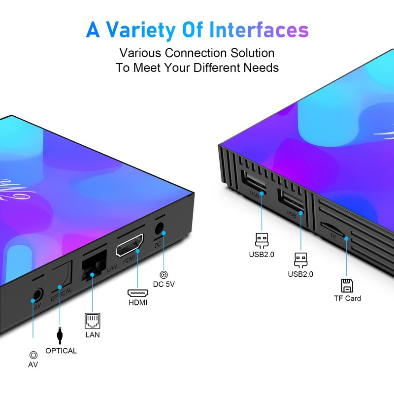 - 【Reassuring security】For physical security, the entire back of the Android TV box has small, evenly distributed holes for heat dissipation. For information security, after you have reset the box due to personal needs, all your personal information will not be retained and it will then become a TV box without any information. No leakage of your personal information.