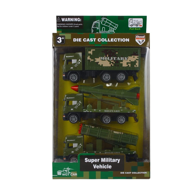 Andux 1:64 Die Cast Pull-Back Toy Car Military Vehicle Ambulance Fire Truck Transporter Engineering Vehicle Set of 3 WJC-04 (Military Vehicle) 2215-20