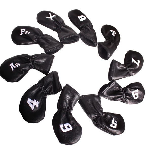 Andux 10Pack PU Golf Irons Club Head Covers with Number on both Sides Black MT/PU02