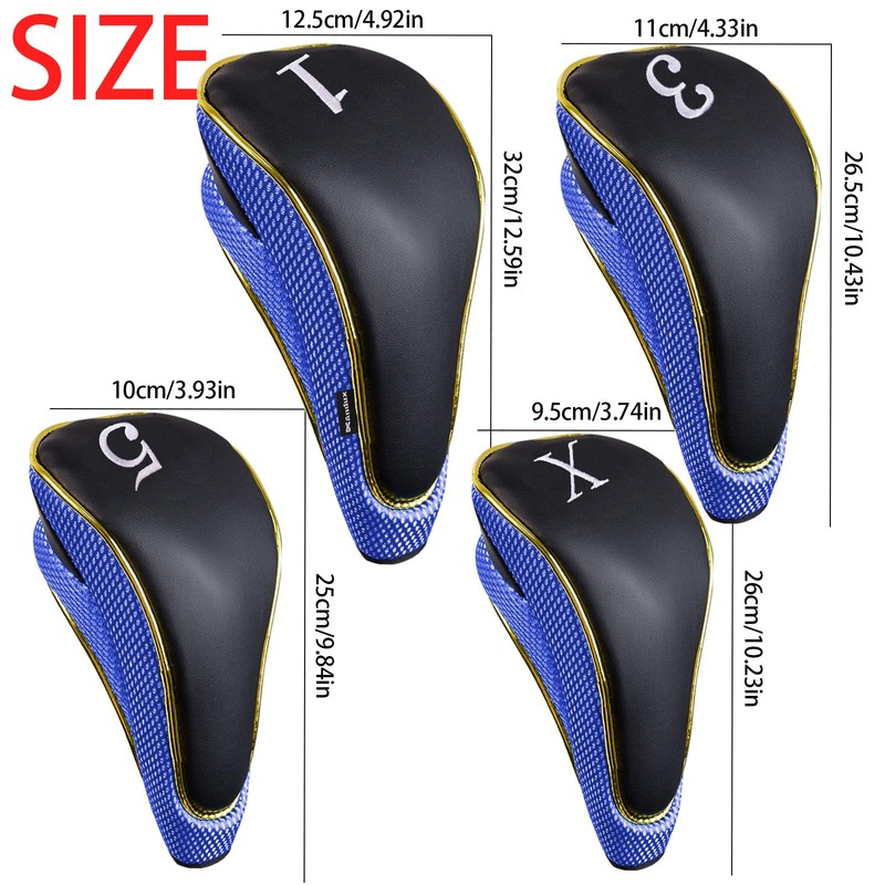 Andux 4Pcs/Set Gold Golf 460cc Driver Fairway Wood Club Head Covers Hook & Loop Blue