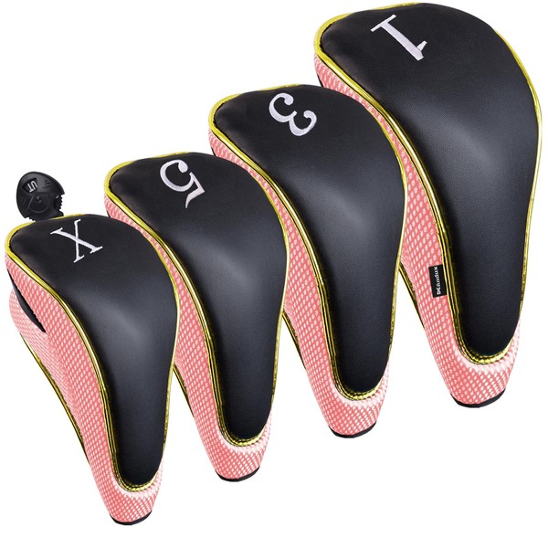 Andux 4Pcs/Set Gold Golf 460cc Driver Fairway Wood Club Head Covers Hook & Loop Pink