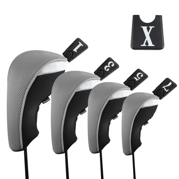 Andux 4pcs/Set Golf 460cc Driver Fairway Wood Club Head Covers Grey