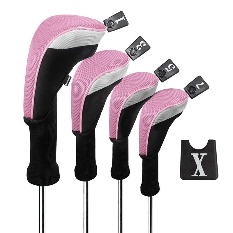 Andux 4pcs/Set Golf Wood Club Head Covers 460cc Driver with Long Neck Pink