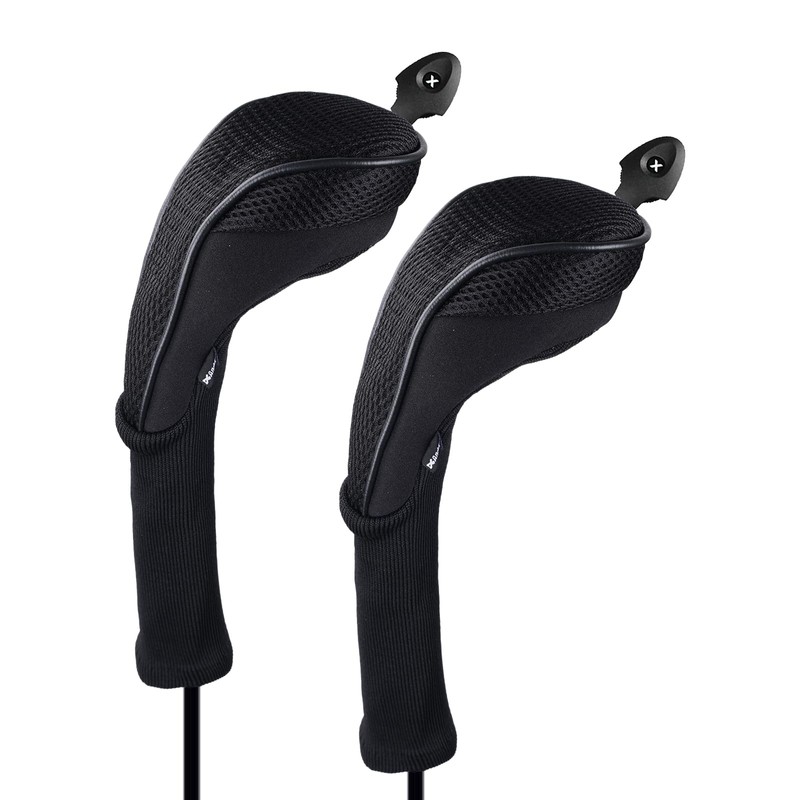 Andux Long Neck Golf Hybrid Club Headcovers with Interchangeable Number Tags Set of 2 (Black)