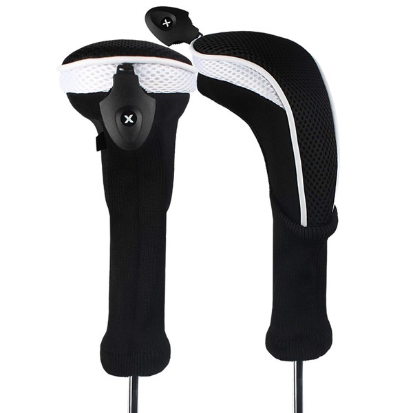 Andux Long Neck Golf Hybrid Club Headcovers with Interchangeable Number Tags (Set of 2) (Black/White)