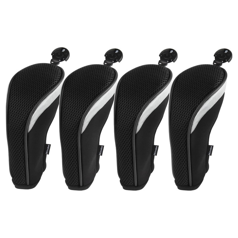 Andux Mesh Golf Hybrid Club Head Covers w/No. Hang Tags 4pcs/Set Black