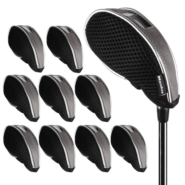 Andux Mesh Golf Iron Club Head Covers with Clear Window 10pack (Black/grey)