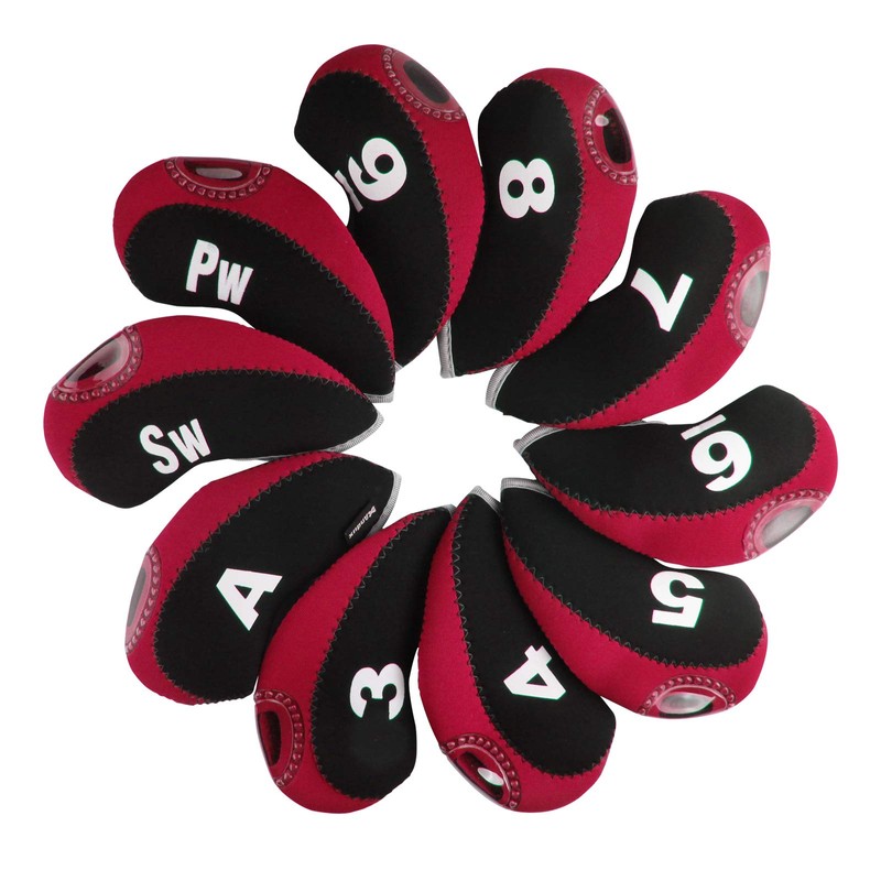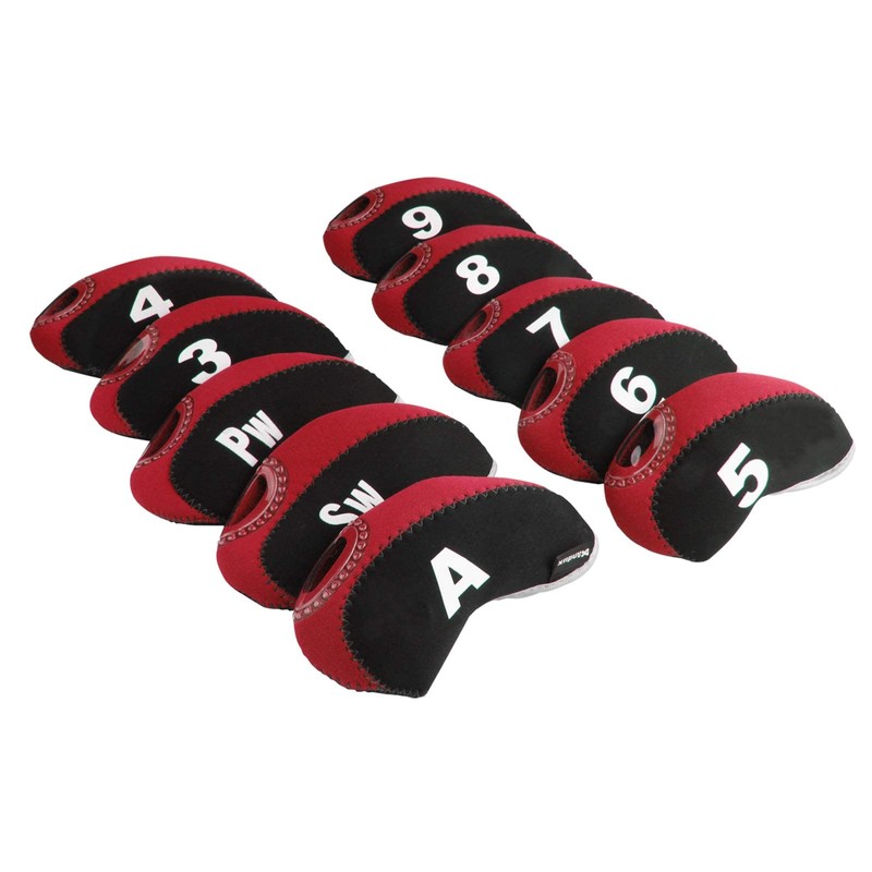 Andux Number Print Golf Club Iron Cover Headcover with Clear Window 10 Pack MT/S (Black/Red)