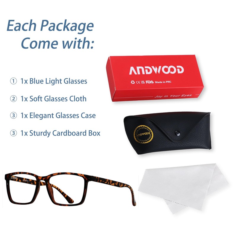 ANDWOOD Blue Light Blocking Glasses Men Women Computer Filter Large Frame Bluelight Blocker Anti Blue Ray Square Tortoise