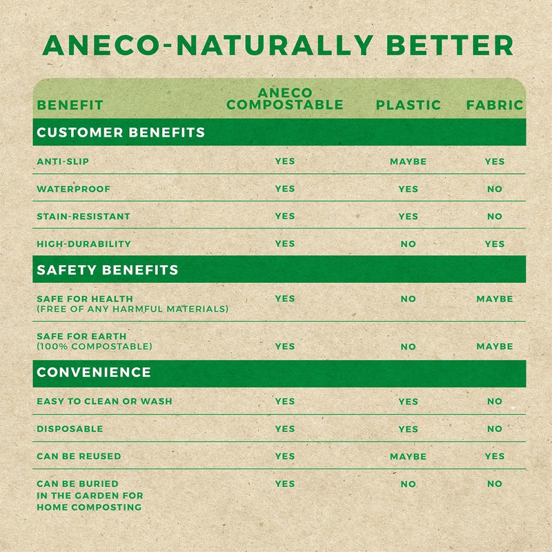 - 🌱 𝗦𝗨𝗣𝗘𝗥 𝗗𝗨𝗥𝗔𝗕𝗟𝗘 𝗔𝗡𝗗 𝗟𝗘𝗔𝗞𝗣𝗥𝗢𝗢𝗙: If you are facing leak problems and are not satisfied using disposable tablecloth in the past, try ANECO table covers - durable and 100% waterproof tablecloth. Anti-slip, water-resistant, and spill-resistant, our compostable table cloth will give you excellent protection for your precious tables from spills, stains, and scratches.