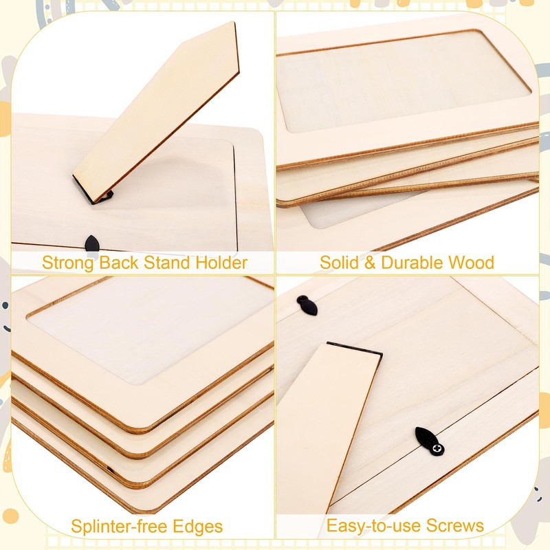 - Size Information: each unfinished wood frame measures 7.48 x 5.51 inches, with an internal photo space of 4 x 6 inches, fitting standard photo sizes beautifully; the adhesive foam stickers range from 0.78 to 1.97 inches, providing diverse decorative options while maintaining a coherent design aesthetic