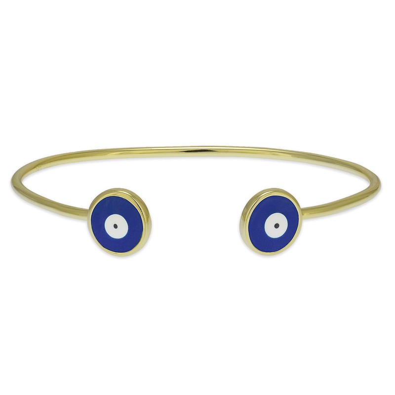 Anela Evil Eye Bangle, Enamel Good Luck Eye Bangle, Gold Plated Stackable Bra...
