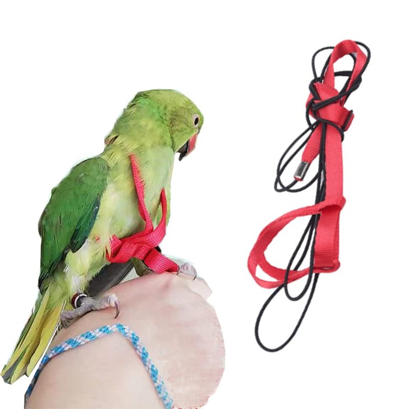 Anelekor Adjustable Birds Harness and Leash Parrot Harness Leash Training Supplies Pet Anti-bite Outdoor Flying Rope for Conures Budgerigar Lovebird Cockatiel Mynah (M, Red)