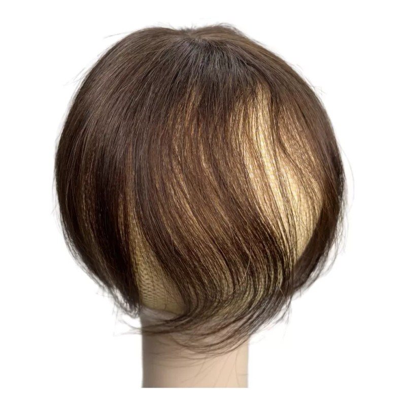 2. Los toppers de cabello humano liso son más fáciles de usar que las pelucas. No necesitas atarte el cabello con redecillas, y mucho menos con pegamento. El Toupee Topper se sujeta fácilmente a la cabeza del cabello. Puedes ponértelo y deshacerte de él rápidamente.