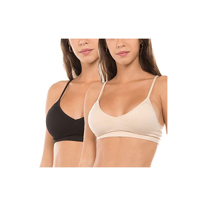 Anemone Seamless Padded V-Neck Cami Bra 04 - 2PACK: BLACK/BEIGE