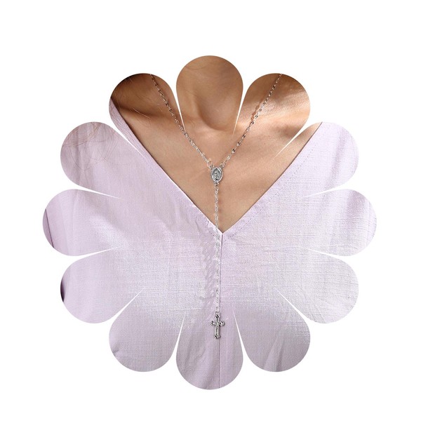 Aneneiceera Boho Cross Necklace Chain Cross Long Y Drop Necklace Chain Gold Virgin Mary Pendant Necklace Faith Cross Lariat Necklace Chain Jewellery Gifts for Women and Girls, Silver