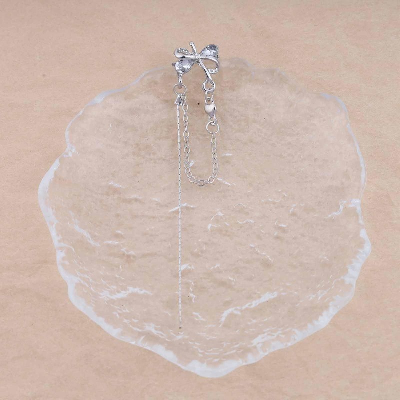 Aneneiceera Boho Crystal Bow Chain Cuff Earrings Silver Cz Bow Ring Helix Earrings Long Chain Clip on Earrings Rhinestone Bowknot Earcuff Earrings Jewelry for Women and Girls (left)