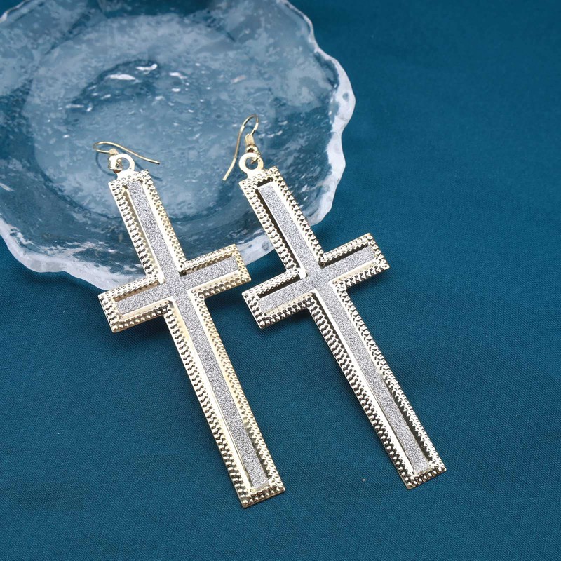 Aneneiceera Boho Large Cross Earrings Gold Large Cross Drop Earrings Cross Dangle Earrings Statement Shinny Nightclub Prom Earrings Jewellery Gifts for Women and Girls, Metal