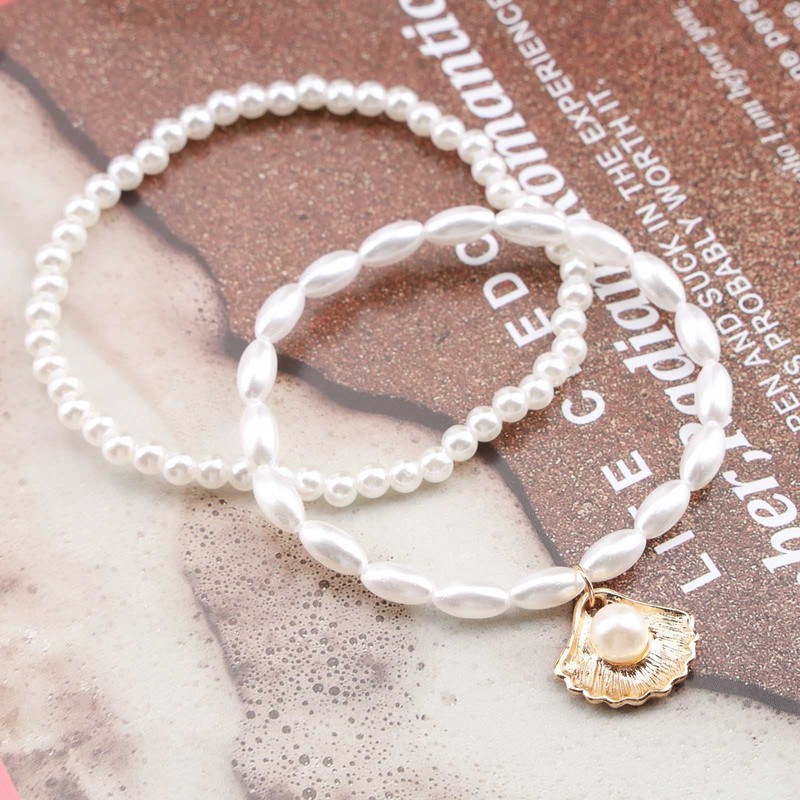 Aneneiceera Fashion Beach Pearl Anklet Bracelet Boho Gold Shell Pearl Elastic Ankle Foot Wedding Jewellery for Women and Girls, Rubber