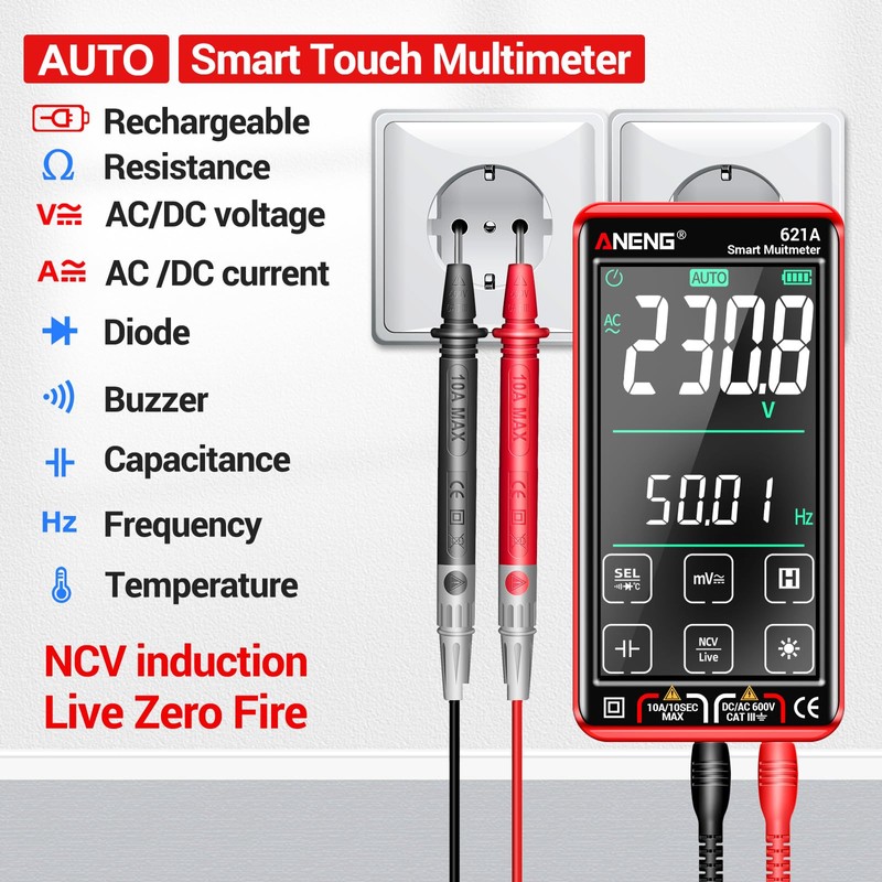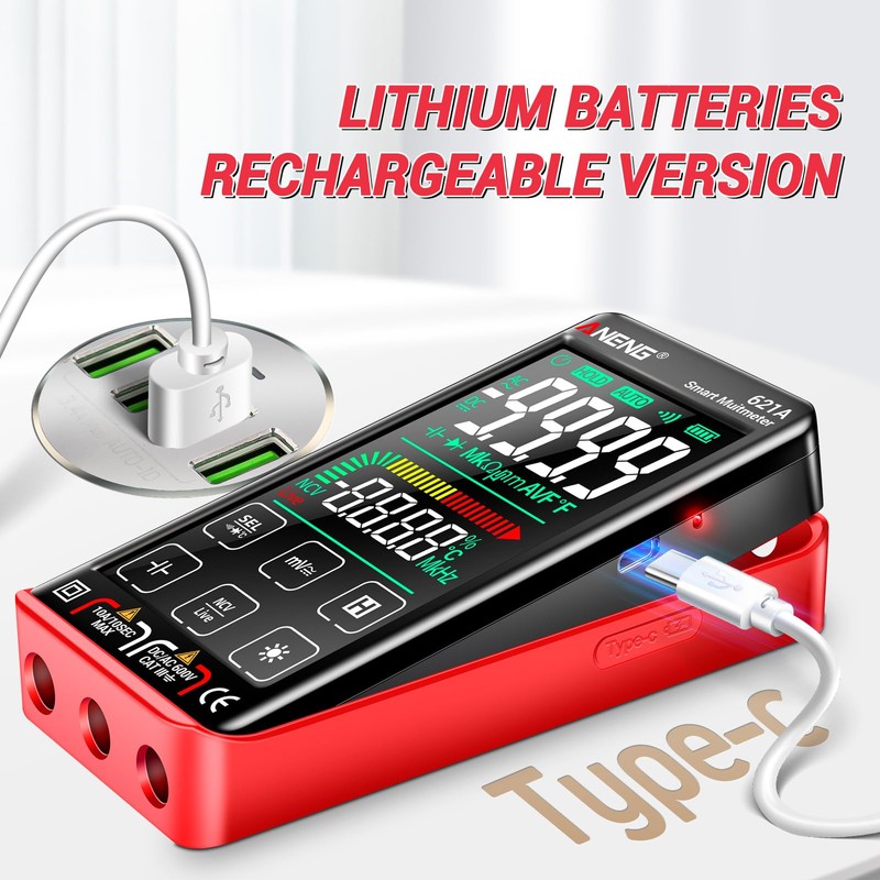 ANENG Digital Multimeter Tester Smart Touch TRMS Auto-Ranging 9999Counts Rechargeable anti-burning Ohm Amp VoltMeter With NCV,DC/AC Current,Voltage,Resistance Diodes,Continuity,Capacitance,Temperature