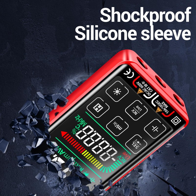 • 【Smart Mode & Touch Screen】The multi meter defaults to Smart Mode, the volt meter can test automatically -- it can identify the measurement content and selects the range with the best resolution, you don’t need to do anything extra!The 9999 Counts True-RMS voltmeter with a large LCD color screen display, and flashlight for easy reading even in bright or dim places. In addition, the voltage tester can display analog bar, real-time temperature, low battery prompt, and damaged fuse prompt.