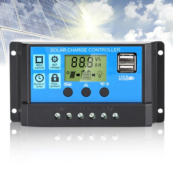 Anern 30A PWM Solar Charge Controller 12V/24V Solar Charge Controller Regulation Charge with LCD Display and Dual Port 5V USB Solar Regulator