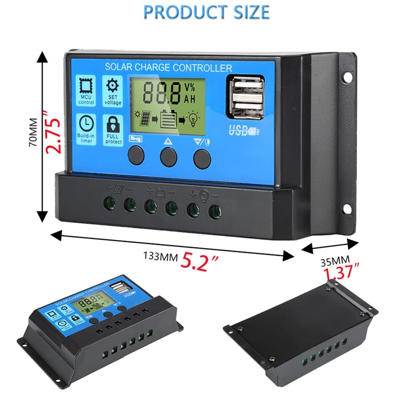 • Battery Type: The charge controller is only suitable for lead-acid batteries: OPEN, AGM, GEL, it is not suitable for nickel-hydride, lithium, Liions, or other batteries.The built-in industrial microcontroller can automatically control the work of solar panel and battery to charge.