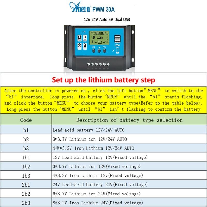 • 30A Solar Charge Controller: Anern solar panel charge controller has full 3-stage PWM charge management, improving the efficiency of the system. Fully 3-stage PWM regulation charging with direct charge, boost charge, floating charge three-stage PWM regulation charging mode. Using the controller to realize efficient and fast intelligent charging, and effectively extend the battery life.