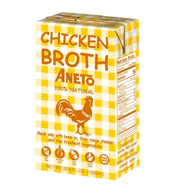 Aneto 100% Natural Chicken Broth, 33.83 Ounce (6 Pack)