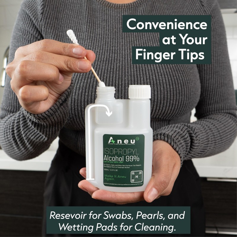 Aneu Isopropyl Alcohol 99% USP - 1/2 Gallon + Travel Bottle | Ideal for Quartz, Tools, & Hard Surfaces | Easy-Access Reservoir for Convenient Dipping (2)