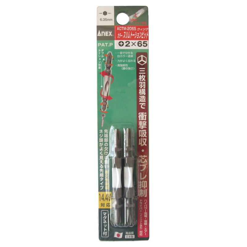 ANEX ACTM-2065 Color Torsion Bit, Double-Ended, Slim +2 x 65, Set of 2