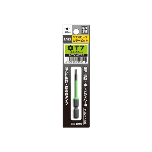 ANEX ACTX-0765 Color Bit Hex Robe Single Head T7x65 with Hole