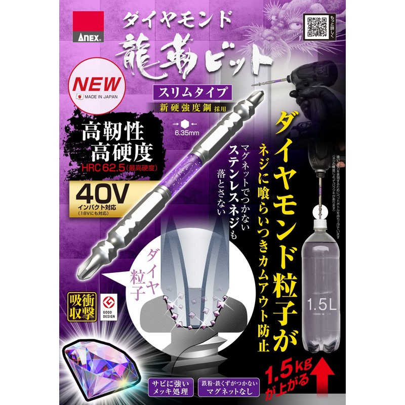 ANEX ADRS-2110 Diamond Dragon Toughness Bit, Double-Headed, Slim, No Magnet +2x110